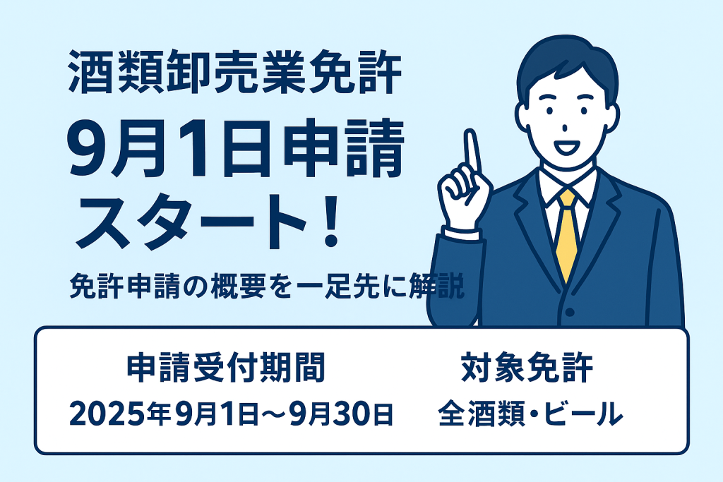 今年も「酒類卸売業免許(全酒類・ビール)」の抽選申請が、9月1日から始まります。 毎年わずか1か月しかないチャンス。申請を検討されている方に向けて、申請期間や抽選方式、必要な準備を分かりやすくまとめました。 申請受付期間と対象免許 受付期間:2... -