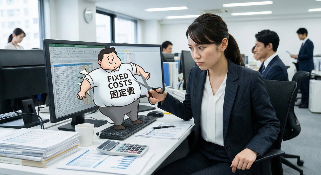最も即効性があるのが固定費の見直しです。固定費とは、売上がゼロでも毎月かかってくるコスト(家賃、人件費、リース料、サブスクリプション費用など)です。