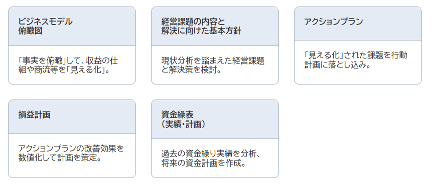 • 実施内容:金融機関に提出する「経営改善計画書」を専門家と作成