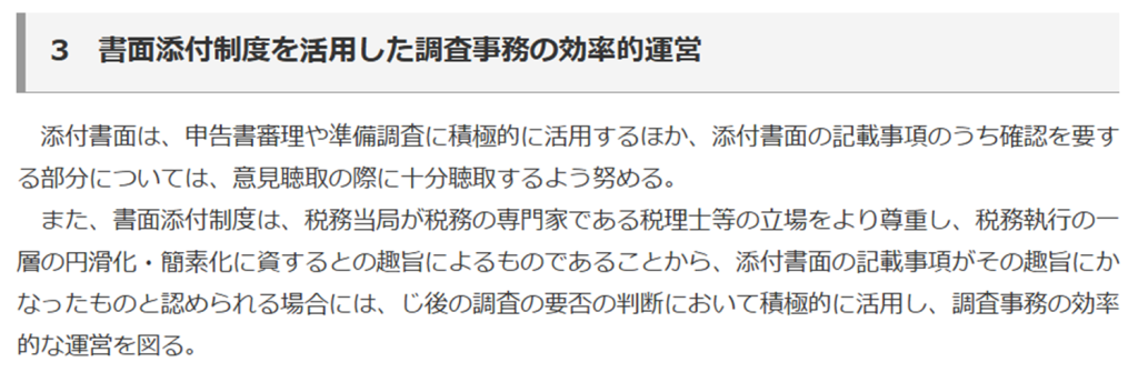 裏を返せば、良好な書面添付を行えば、それだけ他の書面添付と差別化できます。書面添付の趣旨を理解した上で、書面添付に取り組めば、税務調査ゼロが実現できる状況と言えます。