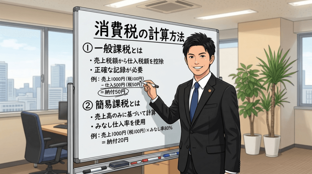 消費税の計算方法には「一般課税」と「簡易課税」の2種類があります。