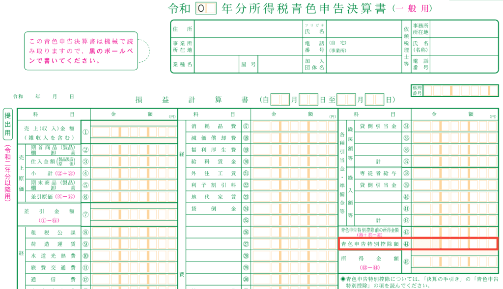 | 65万円 | 65万円 | 複式簿記 | e-Tax | 紙提出は適用不可 |